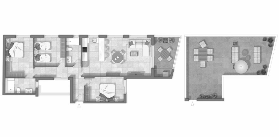 Планировка Пентхауса «3BR-31» 3 спальни в ЖК OASIS GUARDAMAR