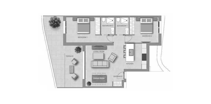 Планировка Квартиры «2BR-34» 2 спальни в ЖК SALISOL RESORT