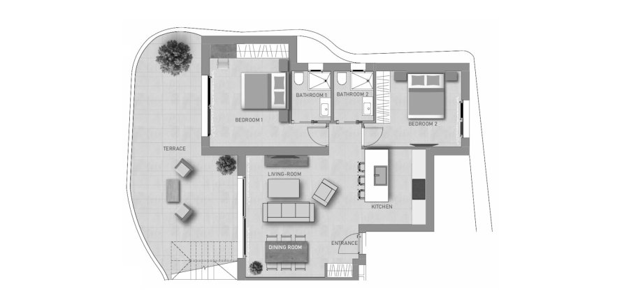 Планировка Пентхауса «2BR-37» 2 спальни в ЖК SALISOL RESORT
