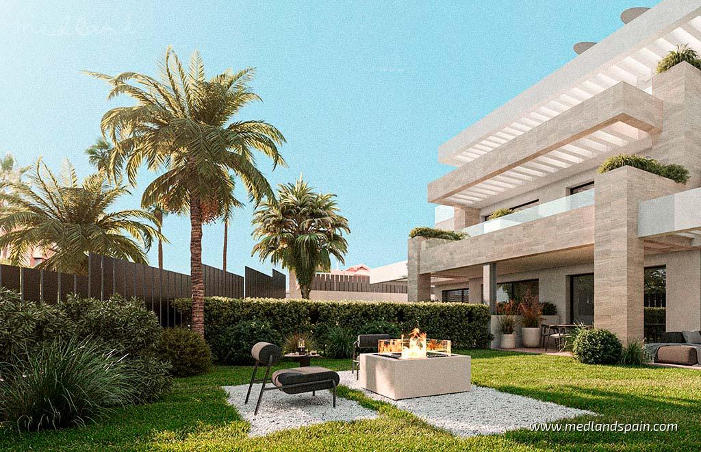 Новый проект из эксклюзивных апартаментов всего в 200 м от пляжа в Эстепоне. Этот район в самом сердце Коста дель Соль предлагает превосходные услуги, а также поля для гольфа, пристани для яхт, эксклюзивные торговые центры и широкий спектр культурных и развлекательных мероприятий. Проект расположен всего в 15 минутах на машине от красивого исторического центра Эстепоны и в 10 минутах от пристани для яхт. Хорошая дорожная сеть позволяет быстро добраться до других туристических районов, таких как Манильва за 15 минут, Сотогранде за 25 минут и знаменитые Пуэрто Банус и Марбелья за 30 минут. Кроме того, аэропорт Малаги находится менее чем в часе на машине.В комплексе представлены апартаменты с 2 спальнями и пентхаусы с 3 спальнями, распределенные в трех блоках по пять апартаментов в каждом, что гарантирует большую конфиденциальность. Модели на первом этаже имеют частный сад с натуральной травой, а модели пентхауса – большой частный солярий. Во всех апартаментах есть жилая зона с открытой планировкой, объединяющая кухню, столовую и гостиную в большое пространство с окнами, выходящими на террасу. Во всех моделях есть главная спальня с собственной ванной комнатой и выходом на террасу, а также туалет для гостей. Из моделей на среднем этаже и пентхаусов открывается фантастический панорамный вид на море.Фантастические апартаменты с отличной отделкой включают полностью оборудованную кухню с бытовой техникой, канальный кондиционер, полы с подогревом в ванных комнатах, кладовую и место для парковки.В комплексе есть общественный бассейн, идеально подходящий для освежения, и садовые зоны, где можно расслабиться и насладиться средиземноморским климатом.