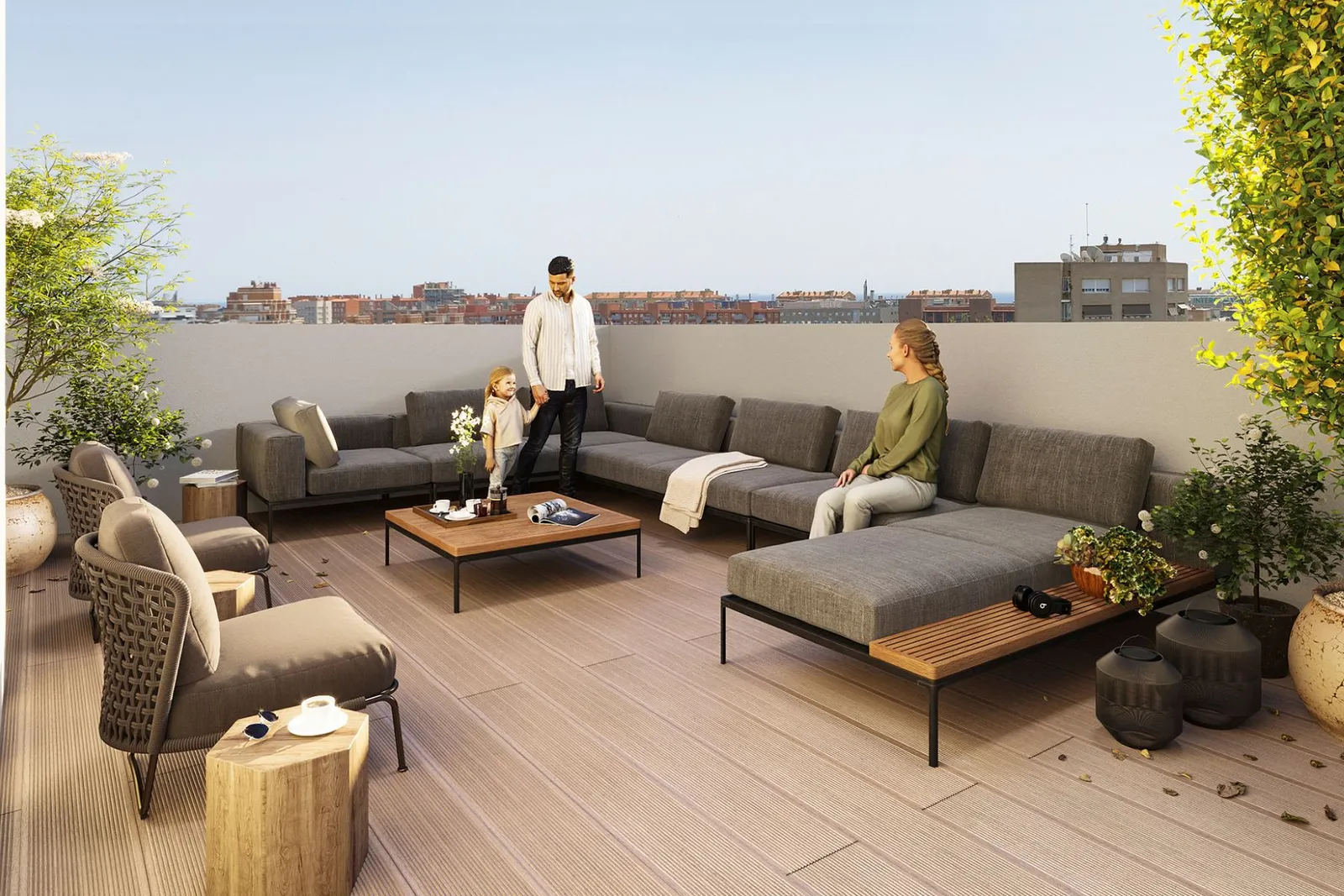 Представляем новый двухуровневый пентхаус в Побле Ноу, площадью 110 м2 и с дополнительной террасой 26 м2, с удивительным видом на город. Дом находится всего в нескольких кварталах от пляжа.Первый этаж предлагает полностью оборудованную кухню и гостиную, где также есть доступ к гостевому туалету и прачечной.