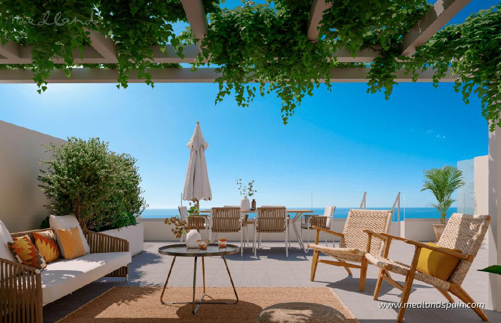 Эксклюзивный жилой комплекс в Бенальмадене, одном из живописных «старых городов» Малаги, с его типичными андалузскими белыми домами, полным выбором услуг, а также широким выбором ресторанов, прекрасными пляжами и пристанью для яхт. Район окружен естественной и спокойной средой, но при этом находится недалеко от городских удобств. В окрестностях можно заняться различными видами активного отдыха, такими как гольф, пешие походы, парусный спорт и другие водные виды спорта. Исторический центр Торремолинос и центр Малаги со всеми его услугами и пляжами находятся всего в 20 и 35 минутах на машине соответственно. Международный аэропорт Малаги менее чем в 20 минутах на машине от комплекса.Апартаменты с 2 или 3 спальнями и 2 ванными комнатами, доступны модели на первом этаже с двумя террасами и модели на верхнем этаже с частным солярием.. Во всех апартаментах присутствует открытая планировка, объединяющая кухню, столовую и гостиную, которая выходит на террасу. В главных спальнях есть собственная ванная комната, а некоторые также имеют прямой выход на террасу. Пентхаусы имеют великолепный вид на Средиземное море. Апартаменты построены из высококачественных материалов и включают кухни, полностью оборудованные бытовой техникой, канальный кондиционер с горячим и холодным воздухом, полностью оборудованные ванные комнаты, два места для парковки и кладовую.Комплекс полностью закрытый и включает в себя различные общественные зоны с открытым бассейном, площадкой для загара, зоной отдыха, ландшафтными садами, тренажерным с сауной и залом для йоги.Это идеальный дом для отдыха или для постоянного проживания.