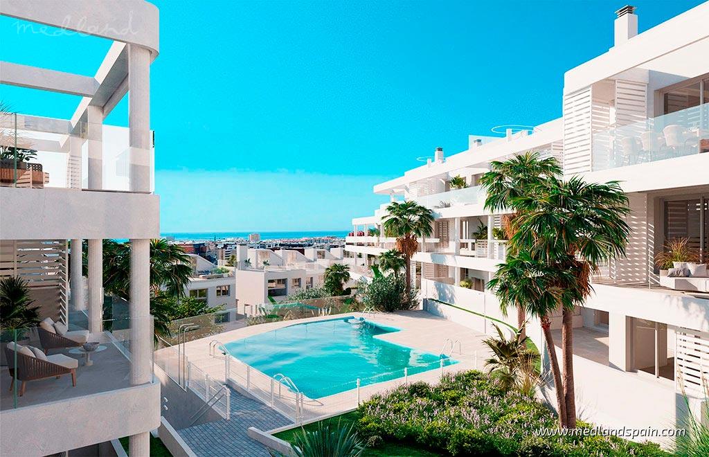 Эти квартиры и таунхаусы в Эстепоне расположены в спокойном районе всего в нескольких минутах от пляжа и рядом с центром города, в одном из самых востребованных мест западной Коста-дель-Соль. Окружённые Средиземным морем и горами Сьерра-Бермеха, они находятся в регионе с мягким климатом и отличной транспортной доступностью: 25 минут до Сотогранде, 30 минут до Марбельи и менее часа до международного аэропорта Малаги. Эстепона, которую называют «садом Коста-дель-Соль», предлагает широкий набор услуг, зоны отдыха, прогулочные набережные и спортивные объекты в течение всего года.В проект входят современные квартиры с 2 и 3 спальнями, а также пентхаусы с террасой на крыше. Планировки отличаются светлыми и открытыми пространствами, где гостиная плавно переходит на просторные террасы. В некоторых квартирах предусмотрен сад, что обеспечивает дополнительную зону отдыха. Пентхаусы выделяются большими террасами на крыше, идеально подходящими для наслаждения панорамой. Таунхаусы с 4 спальнями занимают два уровня и включают террасу, сад и террасу на крыше, а также многофункциональный цокольный этаж. Главная спальня располагает собственной ванной комнатой, а во всех домах имеется кухня открытой планировки с бытовой техникой, система кондиционирования, парковочное место и кладовая.Общественные зоны разработаны с упором на комфорт и спокойствие: бассейн, окружённый садами, солнечные террасы и полностью оборудованный тренажёрный зал. Благодаря ориентации на юг, юго-восток и юго-запад жильё получает много естественного света и открытые виды на окружающий пейзаж; некоторые дома также обладают видом на море.Этот закрытый жилой комплекс сочетает удобство, высокое качество и средиземноморский образ жизни в одном из самых привлекательных районов Коста-дель-Соль.