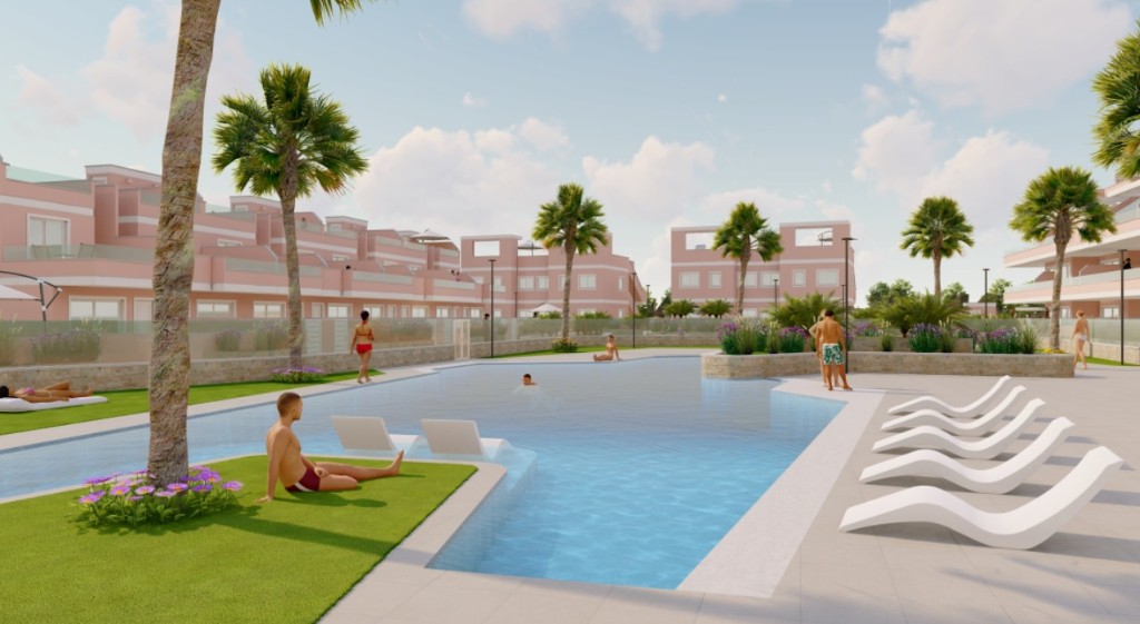 Новый таунхаус на продажу в Пилар де ла ОрададаЖилой комплекс состоит из таунхаусов с 3 спальнями, 2 ванными комнатами, просторной гостиной, кухней, солярием и террасой.В комплексе есть бассейн. Все объекты выполнены по современным стандартам, предварительно установлена система центрального кондиционирования, мебель в санузлах и на кухне.Пилар де ла Орадада находится всего в 10 минутах от пляжа и имеет наилучшее транспортное сообщение, как автомобильным, так и воздушным. Расположенный всего в 20 км от Мурсии и в 60 км от Аликанте (Коста Бланка), он предоставляет полный спектр услуг, таких как больницы, школы, рестораны, торговые центры, поля для гольфа.Особенности