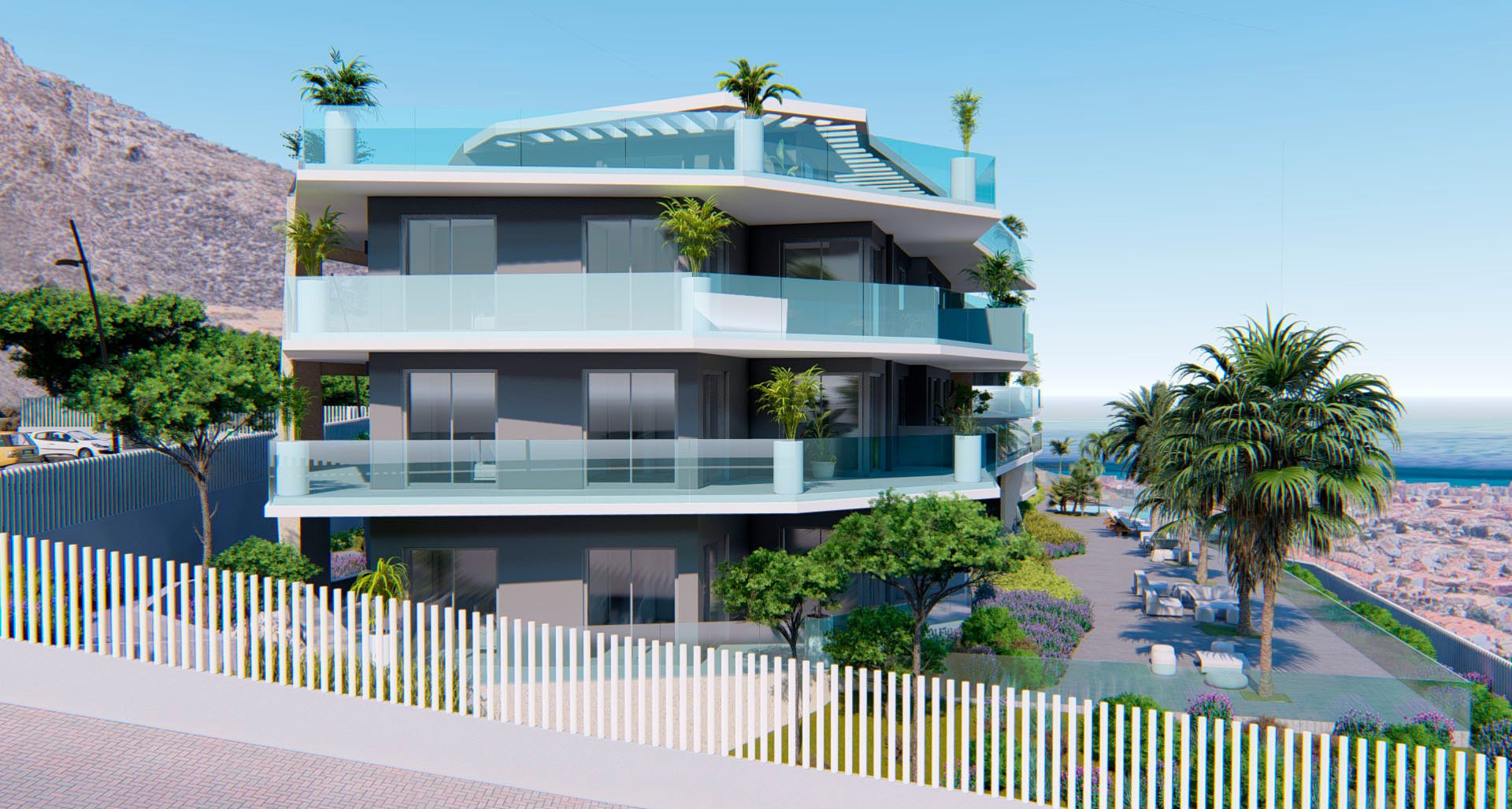 Экстерьеры этих пентхаусов спроектированы для обеспечения расслабляющего и приятного пространства на открытом воздухе. Каждая собственность имеет просторную террасу, идеально подходящую для наслаждения панорамным видом на море и природной средой Бенальмадены. Кроме того, жители имеют доступ к общему солярию, идеальному для принятия солнечных ванн в приватной и эксклюзивной обстановке.