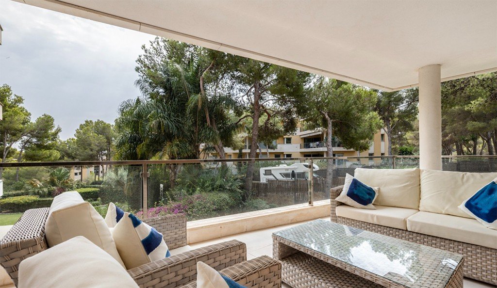 Просторная 3-спальная квартира в комплексе Floresta de Mar с бассейнами и садами в Соль-де-Майорка.Светлые и просторные интерьеры общей площадью 169 м², с большими панорамными окнами, обеспечивающими обилие естественного света.
