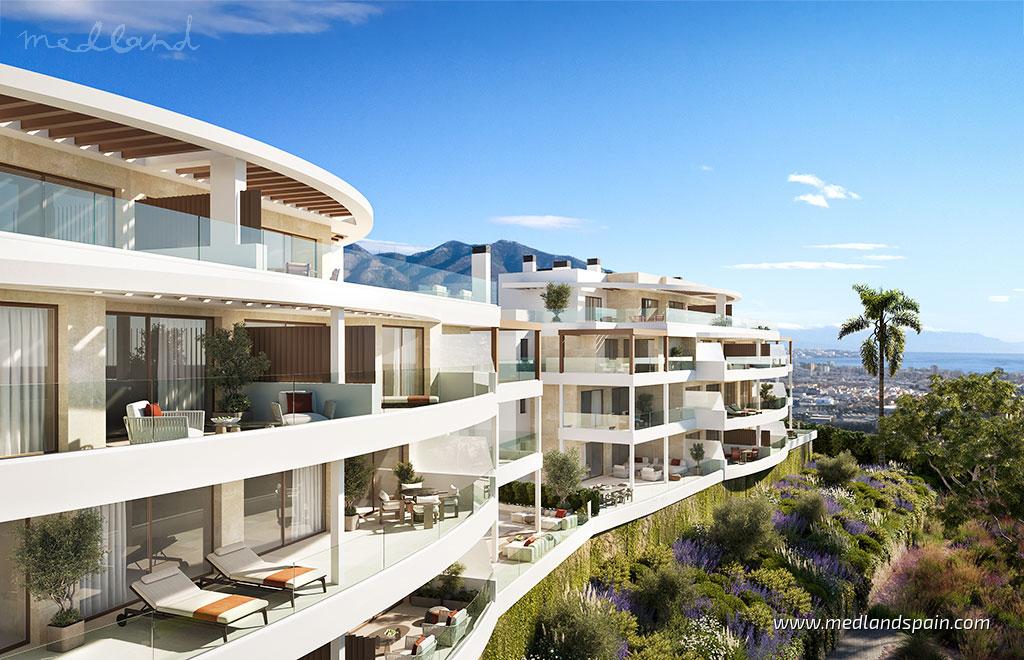 Эти апартаменты расположены в приподнятом и спокойном месте на территории сформировавшегося гольф-курорта в западной части Коста-дель-Соль и предлагают открытые виды на Средиземное море, а также привилегированное расположение в окружении природных ландшафтов и гольф-полей. Окружение создаёт ярко выраженное ощущение простора и уединения, сочетая спокойную атмосферу, близость к природе и удобный доступ к побережью. До пляжа можно доехать примерно за 10 минут, а центры Ла-Кала-де-Михас и Фуэнхиролы находятся приблизительно в 15 минутах езды и предлагают широкий выбор ресторанов, магазинов, спортивных объектов и повседневных услуг. Город Малага и Марбелья расположены примерно в 30 минутах езды, а международный аэропорт Малаги — примерно в 25 минутах.Жилые здания имеют малую этажность и тщательно интегрированы в природное и гольф-окружение, благодаря чему архитектура гармонично вписывается в рельеф местности. Проект включает апартаменты с 1, 2 и 3 спальнями, в том числе варианты на нижних и средних этажах, а также пентхаусы. Каждое жильё спроектировано с учётом оптимальной ориентации, естественного освещения и открытых видов в сторону Средиземного моря. Все апартаменты располагают просторными террасами, которые расширяют жилое пространство на открытый воздух, а пентхаусы особенно выделяются своими очень большими террасами, идеально подходящими для отдыха на свежем воздухе в течение всего года. Планировки отличаются простором и сбалансированностью, с кухнями открытого типа, интегрированными в основную жилую зону.Интерьеры ориентированы на повседневный комфорт и функциональность и сочетают качественные материалы с тщательно подобранной отделкой. Каждый апартамент оснащён системой кондиционирования воздуха, оборудованной кухней с бытовой техникой и полностью укомплектованными ванными комнатами с подогревом полов. Технология Smart Home позволяет управлять ключевыми системами с мобильного устройства, повышая удобство повседневного использования. За каждой квартирой закреплены парковочное место и кладовая.Проект расположен на участке общей площадью 20.000 м², где здания и общие открытые пространства организованы таким образом, чтобы сохранить ощущение открытости и гармоничную связь с окружающей природой. Общие зоны выполнены в виде ландшафтных пространств для отдыха и восстановления сил, с инфинити-бассейном в качестве центрального элемента и открытыми видами на море. Сады, зоны отдыха, тренажёрный зал и коворкинг-пространство для работы и встреч завершают концепцию, формируя сбалансированную среду, в которой гольф, природа и современный комфорт естественно сочетаются.
