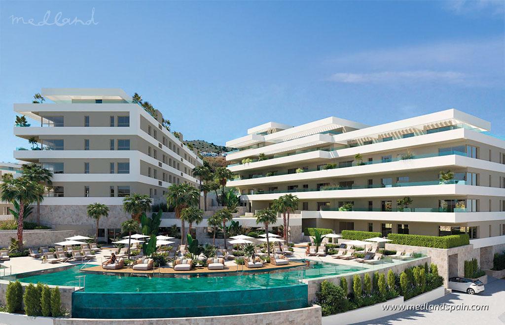 Эти апартаменты в Михас Коста расположены немного выше береговой линии, в современном жилом комплексе, созданном для спокойного средиземноморского образа жизни рядом с полем для гольфа и морем. Проект подойдёт тем, кто ищет продуманную базу на Коста-дель-Соль, где тихая обстановка сочетается с удобным доступом к пляжам, инфраструктуре и международным транспортным сообщениям, как для постоянного проживания, так и для отдыха. Благодаря возвышенному расположению некоторые апартаменты, в зависимости от этажа и ориентации, располагают открытыми видами в сторону Средиземного моря, усиливая ощущение простора и естественного света.Жилые помещения распределены по нескольким малоэтажным зданиям и включают апартаменты с 1, 2 и 3 спальнями, спроектированные с акцентом на естественное освещение и гармоничную связь между внутренними и внешними пространствами. Просторные террасы расширяют жилые зоны, отдельные апартаменты на первом этаже имеют сад, а квартиры на верхних уровнях выделяются особенно большими террасами и панорамными видами. В интерьерах предусмотрены кухни открытого типа с бытовой техникой, полностью оборудованные ванные комнаты, встроенные шкафы и система кондиционирования, а также энергетический класс A. К каждому апартаменту прилагаются место в подземном паркинге и кладовое помещение.Общие зоны задуманы как естественное продолжение жилого пространства и включают благоустроенные сады с открытыми бассейнами для взрослых и детей, а также зоны отдыха. Жители также могут пользоваться подогреваемым крытым бассейном со спа-зоной и системой противотока, полностью оснащённым тренажёрным залом, помещением с гольф-симулятором, коворкинг-пространствами и переговорными, а также элегантной общей гостиной с атмосферой внутреннего кафе.Расположение позволяет добраться до Калонды примерно за 5 минут на автомобиле и до Ла-Кала-де-Михас примерно за 10 минут, где доступны пляжи, рестораны и повседневные услуги. В окрестностях находится несколько полей для гольфа, а дорога до аэропорта Малаги занимает около 25 минут, что делает это предложение удобно расположенным вариантом на Коста-дель-Соль.