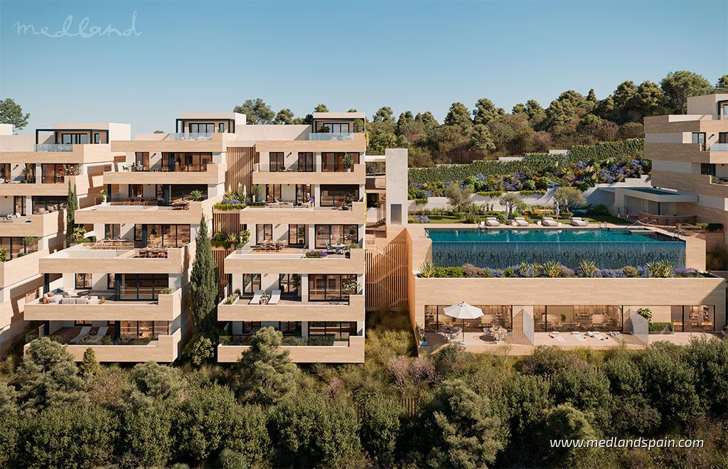 Bara 2,5 km från Medelhavet ligger denna exklusiva bostadsutveckling med moderna lägenheter med 2 och 3 sovrum i Marbella, designade för att kombinera komfort, natur och medelhavsstil. Området är ett av de mest eftertraktade på Costa del Sol.De 80 bostäderna är fördelade över flera byggnader för att ge avskildhet och fri utsikt. Varje bostad har stora, sydvända terrasser – upp till 52 m² – med panoramautsikt över havet. Takvåningarna har två våningar och rymliga takterrasser med utsikt över kusten.Alla bostäder har öppen planlösning med utrustat kök, tvättstuga, inbyggda garderober, luftkonditionering och privat garage med förråd. Interiören är ljus, rymlig och har material av hög kvalitet i naturliga färger.Gemensamma områden inkluderar infinitypool med fri utsikt, uppvärmd bassäng för längdsim, fullt utrustat gym, spa med turkiskt bad, coworking-yta och en stilfull social klubb med poolbar. Grönområdena är planterade med lokala medelhavsväxter för att skapa en lugn och harmonisk atmosfär.Ett utmärkt val för dig som söker ett andra hem vid havet, med natur, komfort och modern stil.Läge