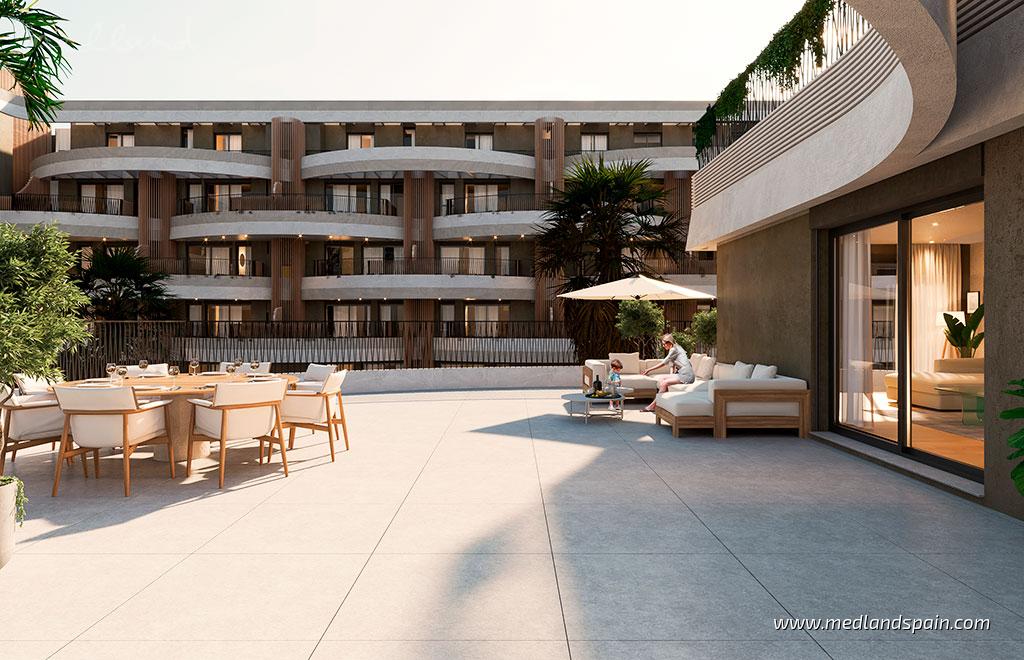 I ett nytt och livligt område i Málaga ligger dessa lägenheter, som ingår i ett modernt bostadskomplex utformat för en nutida, urban livsstil. Området håller på att utvecklas till en av stadens mest dynamiska stadsdelar med över 13 000 m² grönområden, planerade butiker och idrottsanläggningar. Endast en kort bilresa från flygplatsen, med enkel tillgång till tåg och tunnelbana, sjukhus, köpcentrum och universitetet, erbjuder läget utmärkt tillgänglighet och bekvämligheten av att ha allt nära till hands.De eleganta bostäderna finns med 1, 2, 3 eller 4 sovrum och är designade med ljusa, öppna planlösningar som släpper in rikligt med naturligt ljus. Varje lägenhet har en terrass som ger en behaglig utomhusyta för att njuta av det milda klimatet. Bottenvåningslägenheterna har privata trädgårdar – perfekta för avkoppling eller måltider utomhus – medan takvåningarna utmärker sig med sina särskilt stora terrasser, perfekta för solbad, trevliga stunder eller helt enkelt för att uppleva den medelhavska atmosfären. Interiören erbjuder öppna vardagsrum med stora fönster och fullt utrustade kök med vitvaror. Badrummen är färdigställda med material av hög kvalitet och huvudsovrummet har eget badrum i alla modeller, förutom i de med ett sovrum.Varje lägenhet har kanalanslutet luftkonditioneringssystem som säkerställer komfort året runt, samt parkeringsplats och förråd. Bostadskomplexet har en saltvattenspool omgiven av vackert anlagda trädgårdar, ett fullt utrustat inomhusgym och ett utomhusområde för yoga, meditation och calisthenics, samt en lekplats för barn.Málaga är en stad rik på kultur och medelhavskänsla. Som huvudstad på Costa del Sol kombinerar den tradition med modern kreativitet – från den historiska Alcazaba och den romerska teatern till över fyrtio museer, bland dem Picasso-museet och Centre Pompidou Málaga. Stadens livliga festivaler, gastronomi och strandpromenad speglar en livsstil som förenar konst, sol och socialt umgänge i perfekt harmoni.Projektet är utformat med fokus på hållbarhet och har BREEAM-certifiering samt energiklass AA. Designen omfattar energieffektiva hissar, LED-belysning i gemensamma utrymmen, förinstallation för laddning av elbilar och användning av lokala, torktåliga växter – allt för att bidra till en modern och ansvarsfull livsstil i södra Spanien.