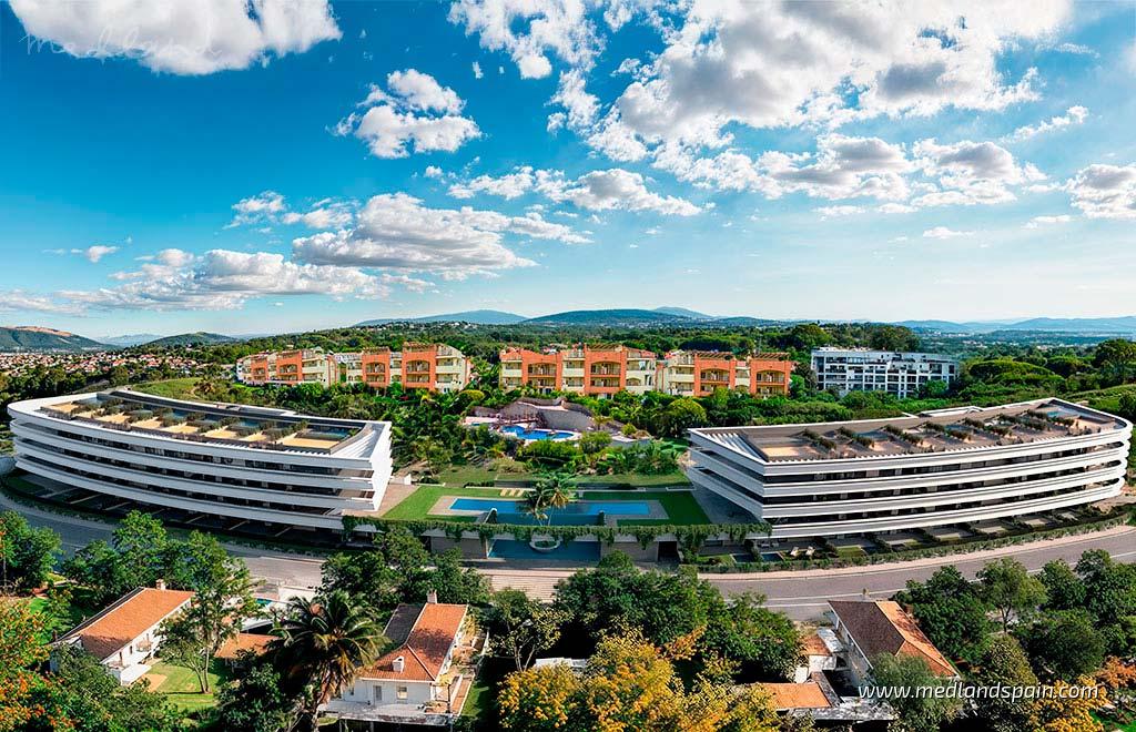 Dessa lägenheter i Manilva är belägna i ett av de mest eftertraktade bostadsområdena på västra Costa del Sol, på kort avstånd från havet och nära golfbanor och småbåtshamnar. Området präglas av lugna omgivningar i kombination med närhet till vardaglig service, vilket gör det till ett utmärkt val för den som söker livskvalitet, öppna vyer och närhet till strand och fritid, med goda vägförbindelser i området.Bostäderna har en modern och elegant arkitektur, utformad för att maximera naturligt ljus, gynnsam orientering och öppna perspektiv. Här erbjuds lägenheter med 2 eller 3 sovrum, alla med 2 badrum, med ljusa sällskapsytor i öppen planlösning som leder ut till generösa terrasser. Marklägenheterna har trädgård och pool, vilket skapar fina förutsättningar för uteliv, medan takvåningarna utmärker sig genom sina solarium med pool och havsutsikt. Det huvudsakliga sovrummet har eget badrum, och planlösningarna är anpassade för bekvämt boende året runt.Köken är fullt utrustade med vitvaror och integrerade i vardagsrummet för en funktionell och social planlösning. Klimatanläggning via aerotermiskt system säkerställer både kylning och uppvärmning, tillsammans med dubbelglas och fokus på energieffektivitet. Varje bostad inkluderar parkeringsplats och förråd, och vissa bostäder erbjuder två av vardera.De gemensamma utrymmena fungerar som en naturlig förlängning av bostaden, med anlagda grönområden och en imponerande infinitypool med kaskadeffekt. Här finns även solterrass, gym, omklädningsrum och gemensamma toaletter, coworkingutrymme, social klubb och cykelparkering. Sammanfattningsvis kombinerar läget kustnära boende med goda förbindelser, vilket gör vardagen på Costa del Sol lätt att njuta av.