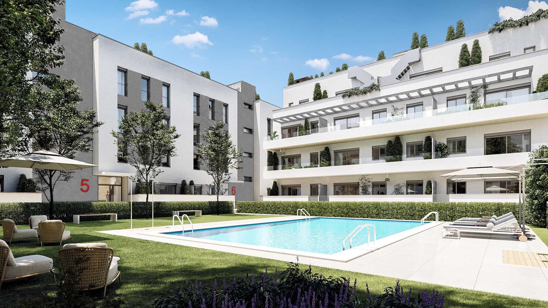 - Gemensamt område med pool